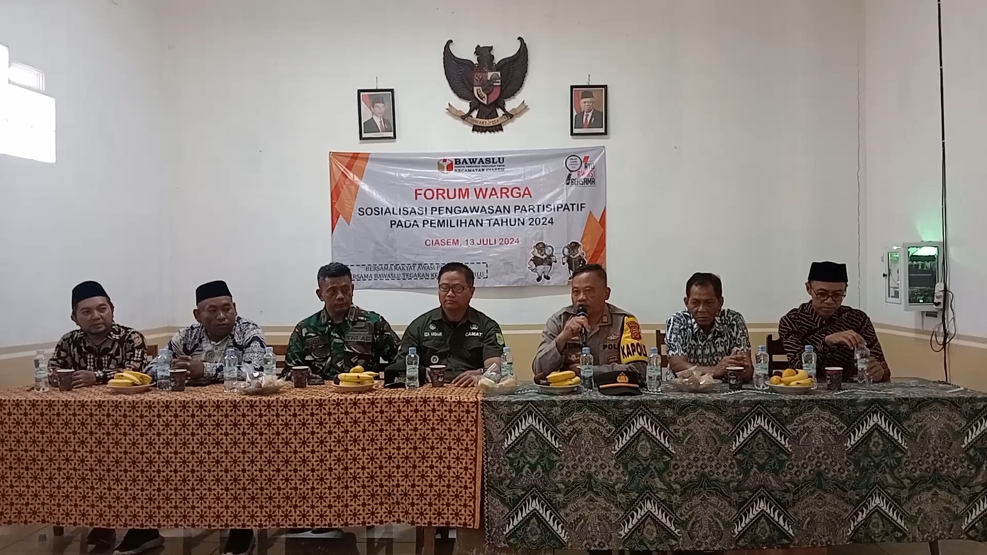 CIASEM, givalnews.com – Panwascam Kecamatan Ciasem pada Sabtu (13/7/2024) bertempat di Aula Kantor Desa Ciasem Tengah selenggarakan kegiatan Forum Warga Sosialisasi Pengawasan Partisipasif Pada Pemilihan Tahun 2024 yang diikuti tokoh masyarakat, tokoh agama, tokoh pemuda, pelajar, mahasiswa, media dan unsur masyarakat lainnya.