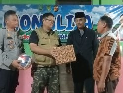 Sebelum acara giat Monalisa Camat Ciasem Eza Zhaithon Thowi memberikan satu set perlengkapan bola voli kepada Karang Taruna Dusun Panjalin.