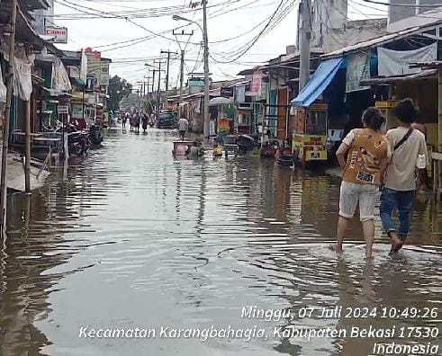 Salah satunya di Perumahan Villa Kencana Cikarang, pada Minggu siang (7/7/2024) banjir kian meluas, sedikitnya ada 2.500 warga terdampak banjir di perumahan yang wilayahnya masuk dua desa, yaitu Desa Karangsentosa, Karangbahagia dan Desa Sukajadi, Kecamatan Sukarya tersebut.